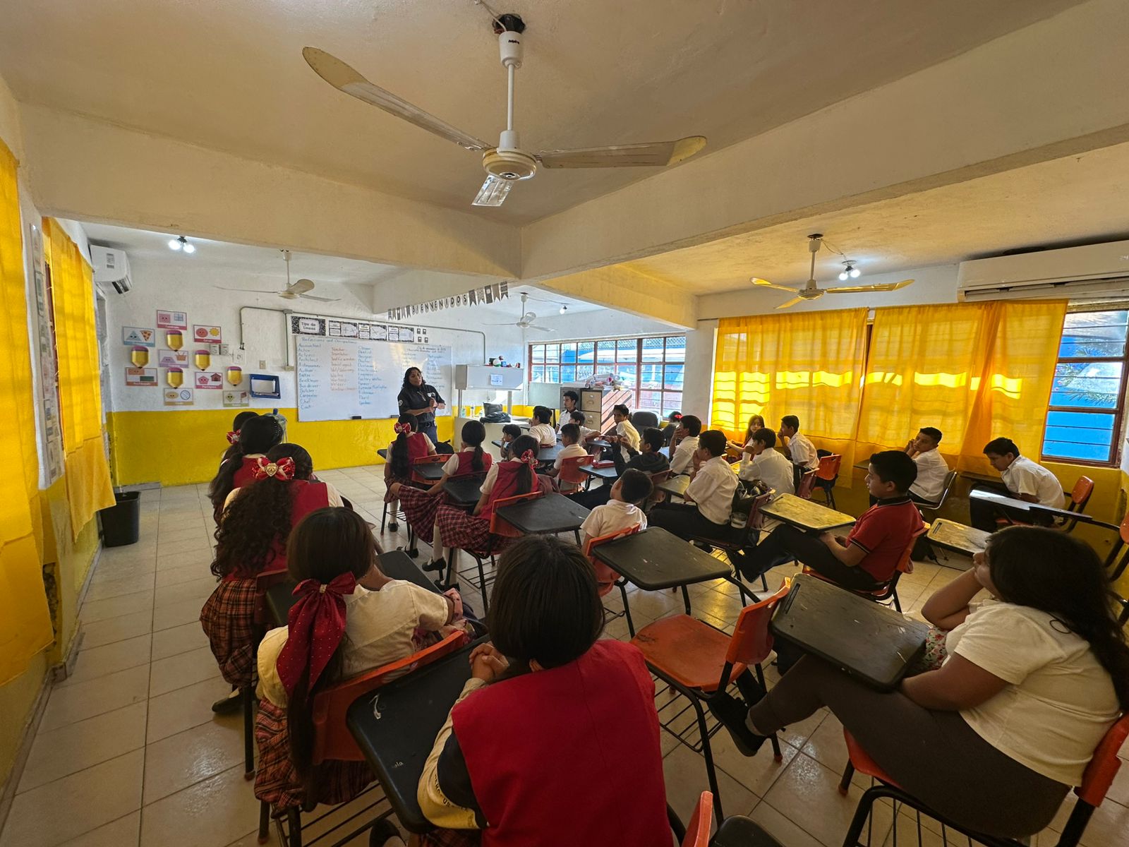Agentes de la UECS acudió a las instalaciones de la Escuela Primaria Profesor Darío Reyes Guerrero (turno vespertino), ubicada en la Colonia Jacinto López II, con la finalidad de promover la cultura de la prevención del delito y salvaguardar la integridad física y mental de los alumnos, en beneficio de la educación, así como brindar capacitación y orientación a docentes y padres de familia de la comunidad escolar.
