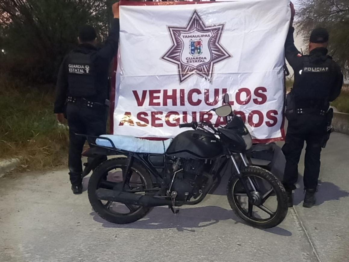 Personal de la Guardia Estatal aseguró una motocicleta con reporte de robo durante un recorrido de vigilancia en la colonia Vicente Guerrero en Reynosa.