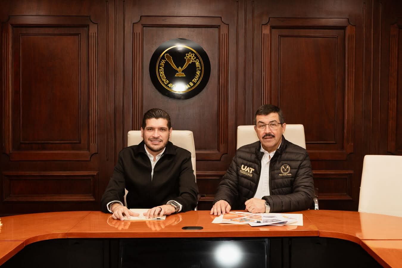 El alcalde de Matamoros, Beto Granados, sostuvo una reunión con el rector de la Universidad Autónoma de Tamaulipas, Dámaso Anaya Alvarado, en la que dialogaron sobre nuevos proyectos educativos que se programan para la ciudad.