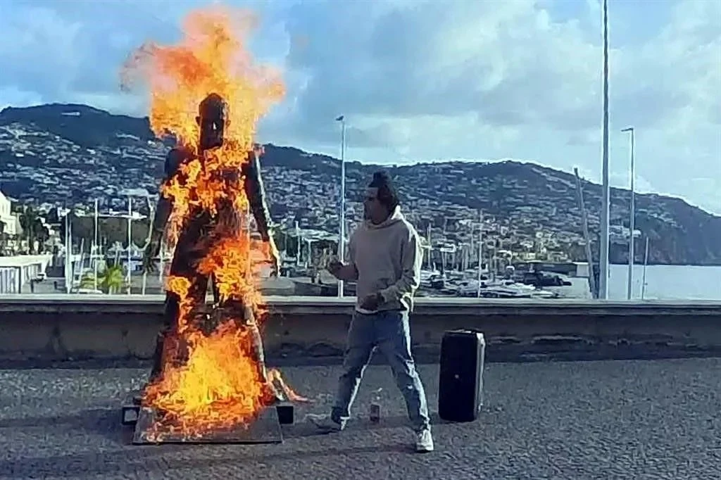 Un hombre que en Instagram se identifica como “zaino.tcc.filipe” se grabó prendiéndole fuego a la estatua de Cristiano Ronaldo en Madeira, Portugal.